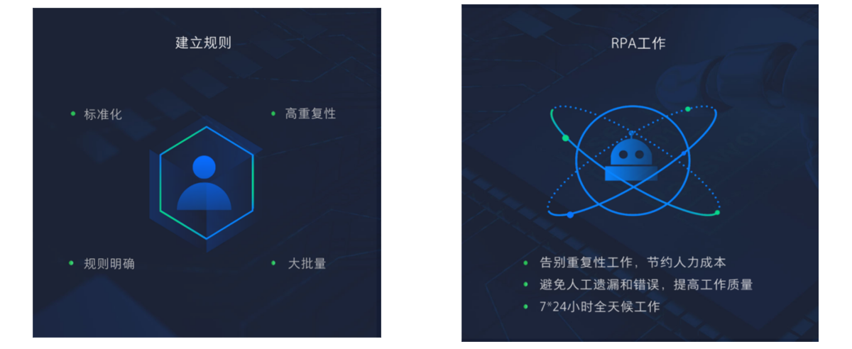 针对不同行业中高重复性、标准化、规则明确、大批量的日常事务,设定 RPA 操作,优化企业基础流程。