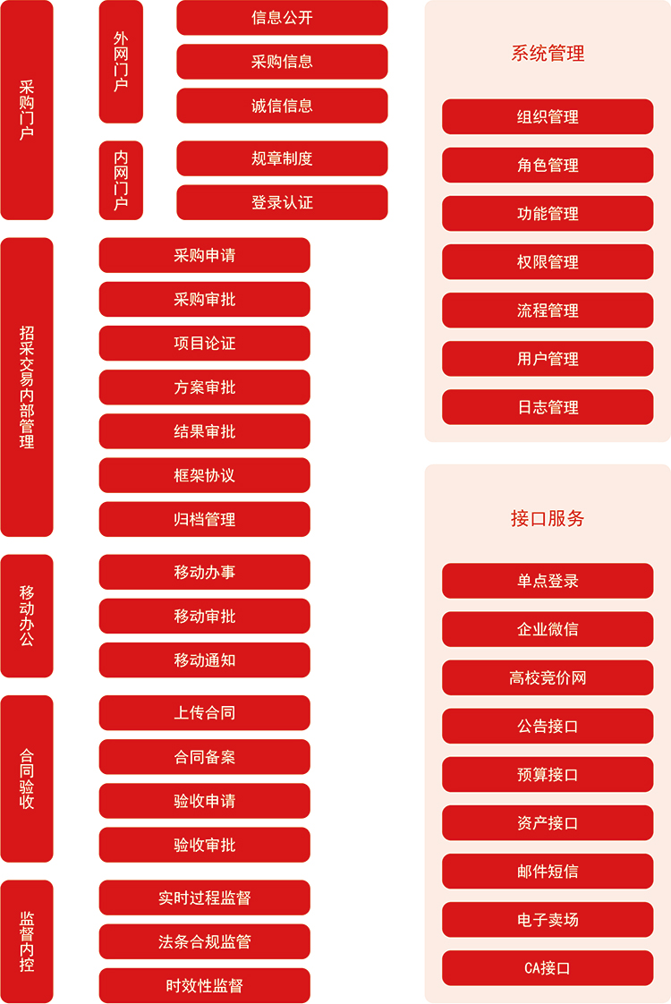 | 监督内控 | 监管内控 | (1)实时监督,通过对项目全程跟踪和档案留存,提供监管审计实时查阅采购项目资料,实时进行监督。