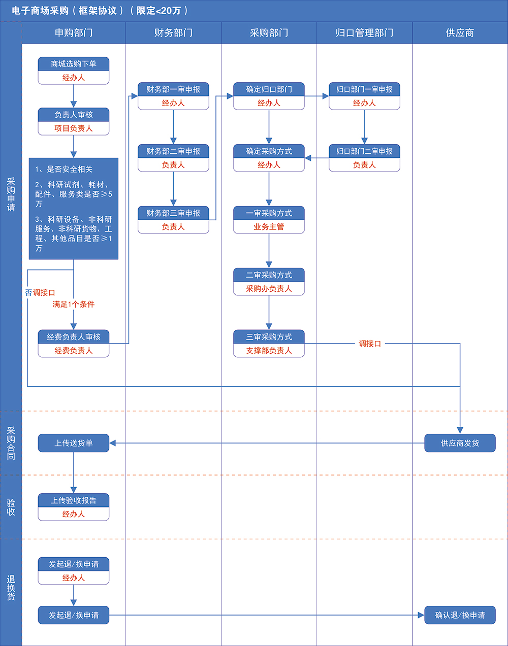 | 采购审批 | (1)内部申请部门下单后,可按照单位框架协议类采购申请的审批流程进行订单审批。