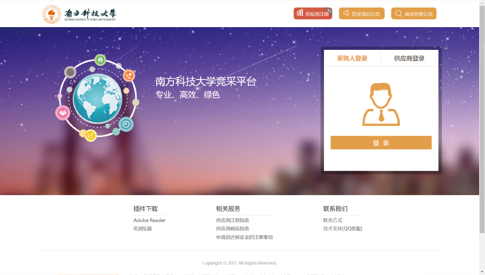 南方科技大学电商点单采购管理系统和协议框架采购。支持价格优先法和质量优先法。